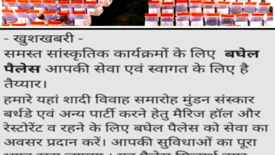 खुशखबरी – समस्त सांस्कृतिक कार्यक्रमों के लिए बघेल पैलेस आपकी सेवा एवं स्वागत के लिए है तैय्यार
