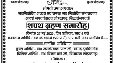 27 मई शनिवार शाम 4 बजे से शोहरतगढ़ नगर पंचायत में आयोजित होगा शपथग्रहण समारोह : ईओ नवीन कुमार सिंह। एसडीएम उत्कर्ष श्रीवास्तव नव निर्वाचित अध्यक्ष ऊमा अग्रवाल एवं पंद्रह सभासदों को दिलाएंगे संविधान की शपथ।