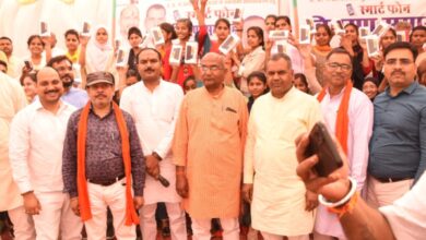 विधायक ने बांटे स्मार्ट फोन छात्रों के खिले चेहरे