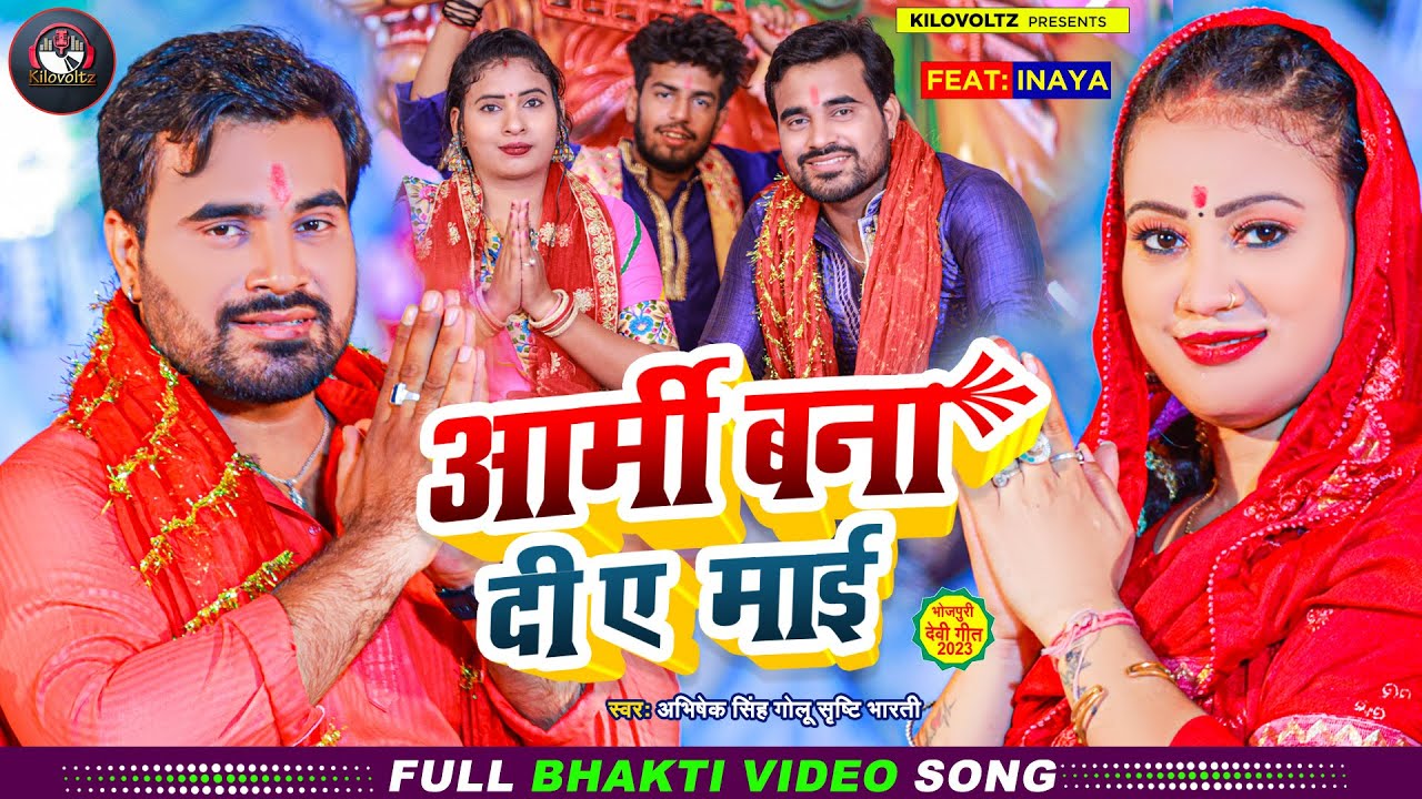 यह देवी गीत मां शेरावाली से गुहार लगा रहे कि माई हमे आर्मी बना दी, जिसे अपने खास अंदाज में सिंगर अभिषेक सिंह गोलू व श्रृष्टि भारती ने गाया है और एक्ट्रेस इनाया पर फिल्माया गया है। यह देवी गीत किलोवोल्ट्ज के ऑफिशियल यू-ट्यूब चैनल पर देखा व सुना जा सकता है। इस गाने के वीडियो में इनाया मां शेरावाली के आगमन होने से बहुत ही उत्साहित नजर आ रही हैं। वह देवी गीत में मां शेरा वाली से गुहार कहती हैं कि‘हमारा मजनुआ को आर्मी बना दी … यह देवी गीत माता जी के नव युवक भक्तों को काफी पसंद आ रहा है।