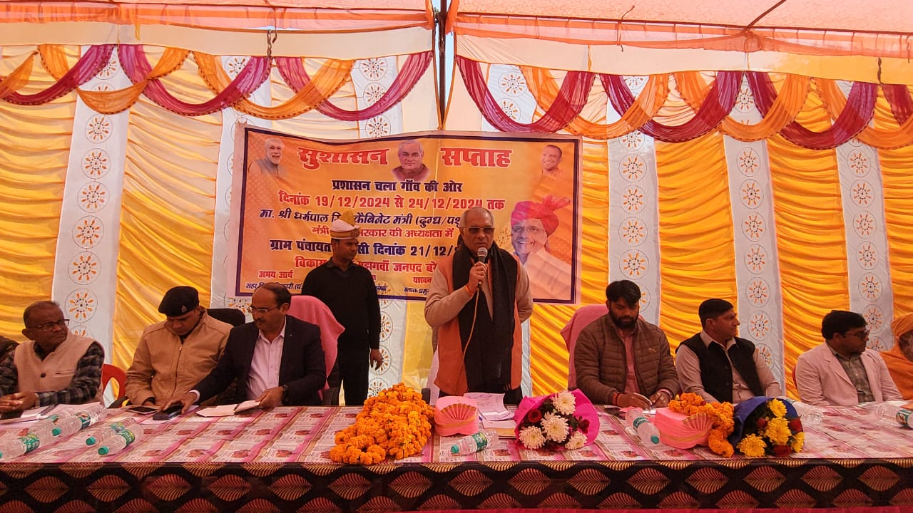 आंवला । पशुधन एवं दुग्ध विकास मंत्री धर्मपाल सिंह की अध्यक्षता में शनिवार को सुशासन सप्ताह के अवसर पर “प्रशासन गाॅंव की ओर” अभियान के तहत आंवला विधानसभा के फुलासी ग्राम पंचायत में विशेष शिविर का आयोजन किया गया। भारत मां के महान सपूत, पूर्व प्रधानमंत्री श्रद्धेय अटल बिहारी वाजपेयी का यह जन्म शताब्दी वर्ष है। पीएम मोदी की प्रेरणा से पूरे देश-प्रदेश में सुशासन सप्ताह का शुभारंभ हो रहा है। इस अवसर पर बिजली, पेयजल, सड़क, विधवा-वृद्धा-दिव्यांग पेंशन व आयुष्मान कार्ड, राशन कार्ड, राजस्व, पुलिस-सुरक्षा, खाद्यन सामग्री वितरण करने आदि से संबंधित शिकायतकर्ताओं से संवाद कर समस्याओं का त्वरित निस्तारण सुनिश्चित किया।