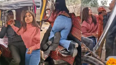 मिर्जापुर में दबंग लड़की ने सरेआम ऑटो ड्राइवर को धुना, नीचे गिराकर ऊपर चढ़ गई
