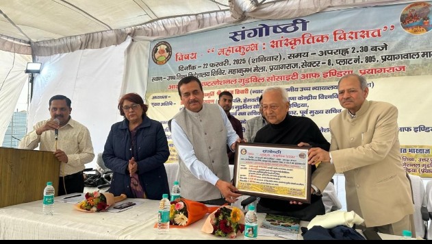 प्रयागराज।“महाकुम्भ: सांस्कृतिक विरासत” विषयक संगोष्ठी में अध्यक्षता करते हुए उच्च न्यायालय प्रयागराज के माननीय न्यायमूर्ति नीरज तिवारी ने कहा कि महाकुम्भ सामाजिक समरसता का संवाहक है । भेदभाव रहितता इसकी विशेषता है । विश्व परिवार की संकल्पना और जन कल्याण भाव हमें महाकुम्भ में दिखाई देता है ।इस महाकुम्भ में कई पीढ़ियों को हम एकसाथ देख सकते हैं। सामाजिक समरसता, परिवारभाव, बड़ों का सम्मान एवं आदर हमारी संस्कृति की पहचान है । कुम्भ एक सतत परम्परा और विरासत है।मुख्य अतिथि, उत्तर प्रदेश सरकार के पूर्व मुख्य सचिव एवं भारत सरकार के पूर्व रक्षा सचिव आई. ए.एस. श्री योगेन्द्र नारायण ने कहा कि जब हम अच्छे उद्देश्य की ओर बढ़ते हैं तो छोटी-छोटी बुराइयों को भूल जाते हैं। यही हमारी संस्कृति है। संस्कृति किसी देश की पहचान होती है। संस्कृति नई पीढ़ी के द्वारा जीवित रहती है इसलिए जरूरी है कि हमारे नवयुवक अपनी भारतीय संस्कृति को समझें और अनुपालन करें।विशिष्ट अतिथि, उत्तर प्रदेश शिक्षा सेवा आयोग की सदस्य डॉ. कीर्ति गौतम ने कहा कि प्रयागराज का ऐतिहासिक,धार्मिक और सांस्कृतिक महत्व तो है ही साथ-साथ