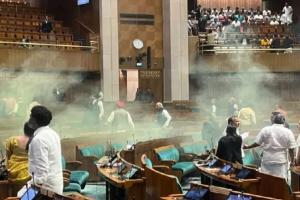 संसद पर 2001 में किए गए आतंकी हमले की बरसी के दिन बुधवार को, सुरक्षा में सेंधमारी की बड़ी घटना उस वक्त सामने आई जब लोकसभा की कार्यवाही के दौरान दर्शक दीर्घा से दो लोग सदन के भीतर कूद गए और ‘केन’ के जरिये पीले रंग का धुआं फैला दिया। घटना के तत्काल बाद दोनों को पकड़ लिया गया।