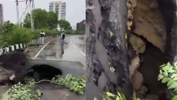 लखनऊ: यूपी के लखनऊ में बीती रात से मूसलाधार बारिश हो रही है, जिसकी वजह से कई जगहों पर जलभराव हो गया है। लखनऊ के प्रसिद्ध 1090 चौराहे के पास एक सड़क भी धंस गई है। इसका वीडियो भी सामने आया है, जिसमें देखा जा सकता है कि सड़क पर एक गहरा गड्ढा हो गया है। इस रास्ते पर लोगों को जाने से रोका जाए, इसलिए किसी ने सड़क पर पेड़ के हरे पत्ते बिछा दिए हैं। लेकिन ये एक अस्थाई समाधान है। अगर कोई तेज रफ्तार गाड़ी इस गड्ढे की चपेट में आ जाती है तो बड़े हादसे की आशंका है।