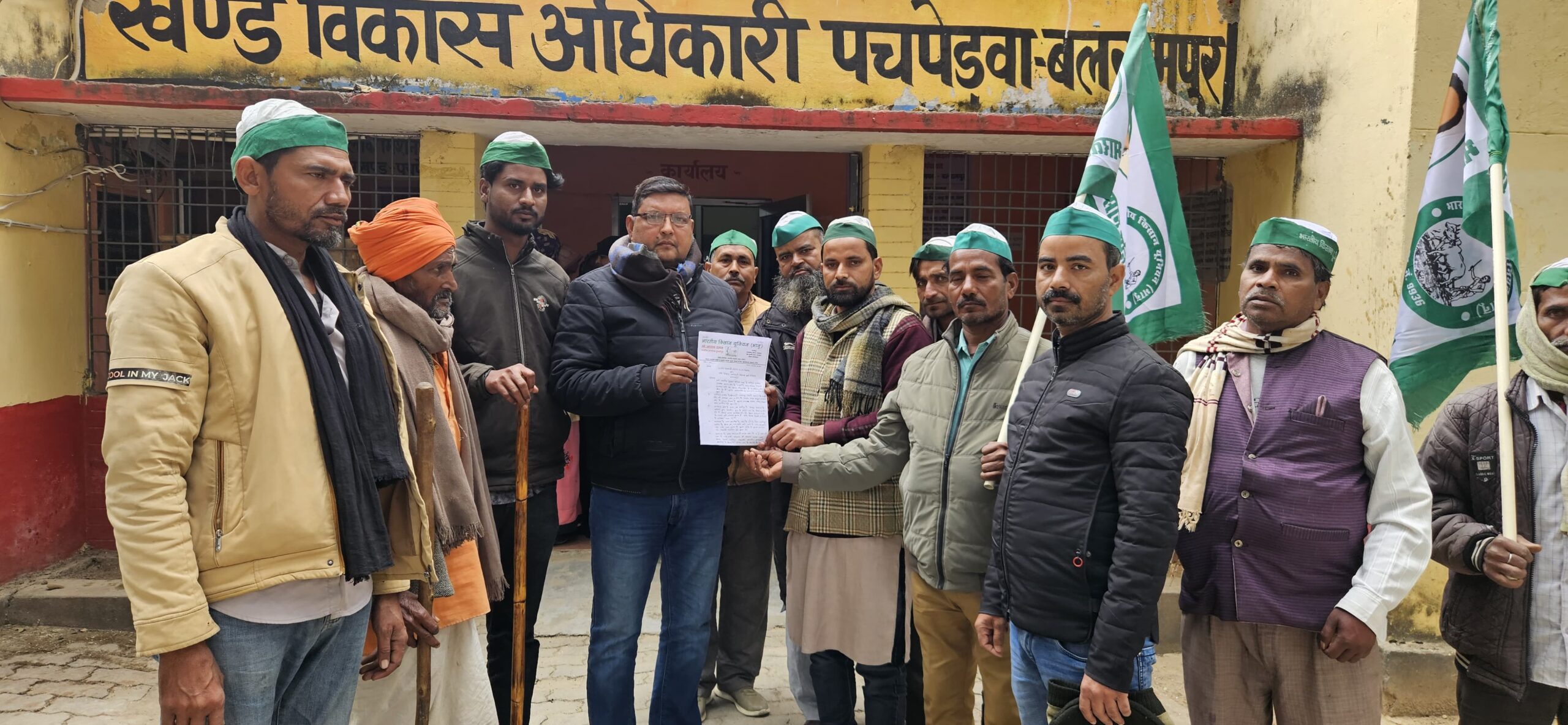 ख्वाजा एक्सप्रेस दैनिक समाचार पत्र पोर्टल यूट्यूब चैनल - पचपेड़वा बलरामपुर।। आज भारतीय किसान यूनियन भानू के कार्यकर्ताओं ने तहसील उपाध्यक्ष आलम खान के नेतृत्व में ब्लॉक पचपेड़वा पर मासिक किसान पंचायत धरना कर माननीय मुख्यमंत्री जी को संबोधित चंदनपुर क्षेत्र में मोबाईल टावर लगाने की मांग के सहित 6 सूत्रीय ज्ञापन खंड विकास अधिकारी के अनुपस्थिति में ग्राम विकास अधिकारी फैज़ मसूद जी को सौंपा । इस अवसर पर तहसील उपाध्यक्ष जी के साथ ब्लॉक उपाध्यक्ष हनुमान जी नगर संरक्षक रोहित कुमार गुप्ता नगर अध्यक्ष घनश्याम भारती जी नगर सचिव मंजूर आलम ग्राम सभा अध्यक्ष राम गोपाल ग्राम सभा अध्यक्ष कमलेश पाण्डे वार्ड अध्यक्ष 15 अब्दुल मतीन खान गोलू कुरैशी, तस्लीम कुरैशी, अफरोज खान, नसीम, नूरुलहुड़ा, राधे श्याम भारती, सुकई आदि कार्यकर्ता उपस्थित रहे ।