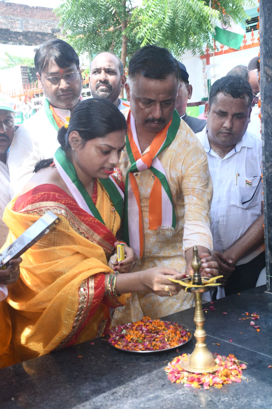 मेरी माटी मेरा देश' अभियान के तहत मनाया गया आजादी का पर्व, शोहरतगढ़ नगर पंचायत में कार्यक्रमो की रही धूम। शोहरतगढ़, सिद्धार्थनगर मेरा माटी मेरा देश कार्यक्रम को लेकर चेयरमैन उमा अग्रवाल की अध्यक्षता में नवीन कुमार सिंह अधिशासी अधिकारी एवं प्रतिनिधि रवि अग्रवाल ने बोर्ड सभासदों और कर्मचारियों के साथ नगर पंचायत शोहरतगढ़ के वार्ड संख्या-13, मुहल्ला- वेणी माधव नगर में स्थित प्राचीन पोखरे पर मुख्य अतिथि मा० विधायक विनय वर्मा जी के उपस्थिति में शिलापट की स्थापना,पंच-प्रण की शपथ, वसुधा वंदन अन्तर्गत 75 वृक्षों का रोपण, वीरों का वन्दन अन्तर्गत शहीद बुधई राम जी के परिजन अवतारी देवी एवं शहीद शीतल प्रसाद के परिजन सावित्री त्रिपाठी को अंग वस्त्र, माला और बैच लगाकर सम्मानित किया गया। जिसके उपरान्त ध्वजारोहण किया गया साथ ही कस्बा स्थित भारत माता चौक पर माल्यार्पण व शहीद बुधई स्मारक स्थल पर बैंड के साथ ध्वजारोहण,राष्ट्रगान किया गया तत्पश्चात नगर पंचायत शोहरतगढ़ पर ध्वजारोहण, राष्ट्रगान किया गया। इस दौरान सुधांशु बोरा, राम मिलन त्रिपाठी सभासद वकील खान, बाबूजी अन्सारी, शिवशंकर अग्रहरी, दिनेश कुमार, सतीश चंद वर्मा, प्रमोद श्रीवास्तव, सोनू महतो, राजू बाबा, लखन गुप्ता, दानिश खान, लिपिक राजेश त्रिपाठी, कमलेश कुमार गुप्ता, बीडी गुप्ता,महेश कसौधन, हैदर अली, सूरज निगम, अंकित, मुकेश,मनोज आदि मौजूद रहे।