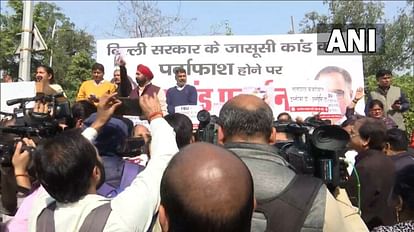 फीडबैक यूनिट पर रार: सीएम केजरीवाल के घर के बाहर भाजपा का प्रदर्शन, आरोप- AAP करा रही जासूसी