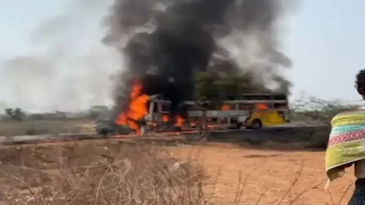 कर्नाटक में दर्दनाक हादसा : टक्कर के बाद कार और बस में लगी भीषण आग, छह लोग जिंदा जले