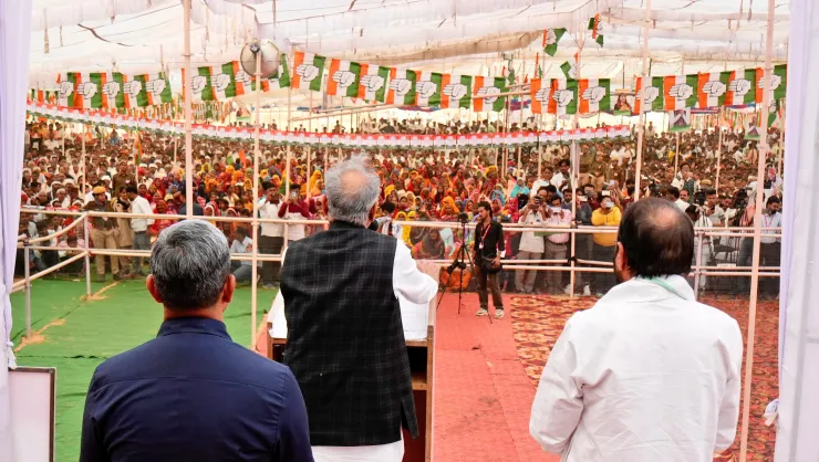 करौली। मुख्यमंत्री अशोक गहलोत ने शनिवार को कहा कि गत पांच वर्षों में राज्य सरकार द्वारा जनहित में एक से बढ़कर एक योजनाएं लाई गई है। इनसे सभी वर्गों के लोग लाभान्वित हो रहे है। उन्होंने कहा कि विपक्ष द्वारा राज्य सरकार के विरूद्ध लगातार आधारहीन आरोप लगाये जा रहे हैं। परंतु आम मतदाता का रूझान इस बार राज्य सरकार के पक्ष में है तथा प्रदेश की 36 कौम के समर्थन से कांग्रेस सरकार रिपीट होने जा रही है।