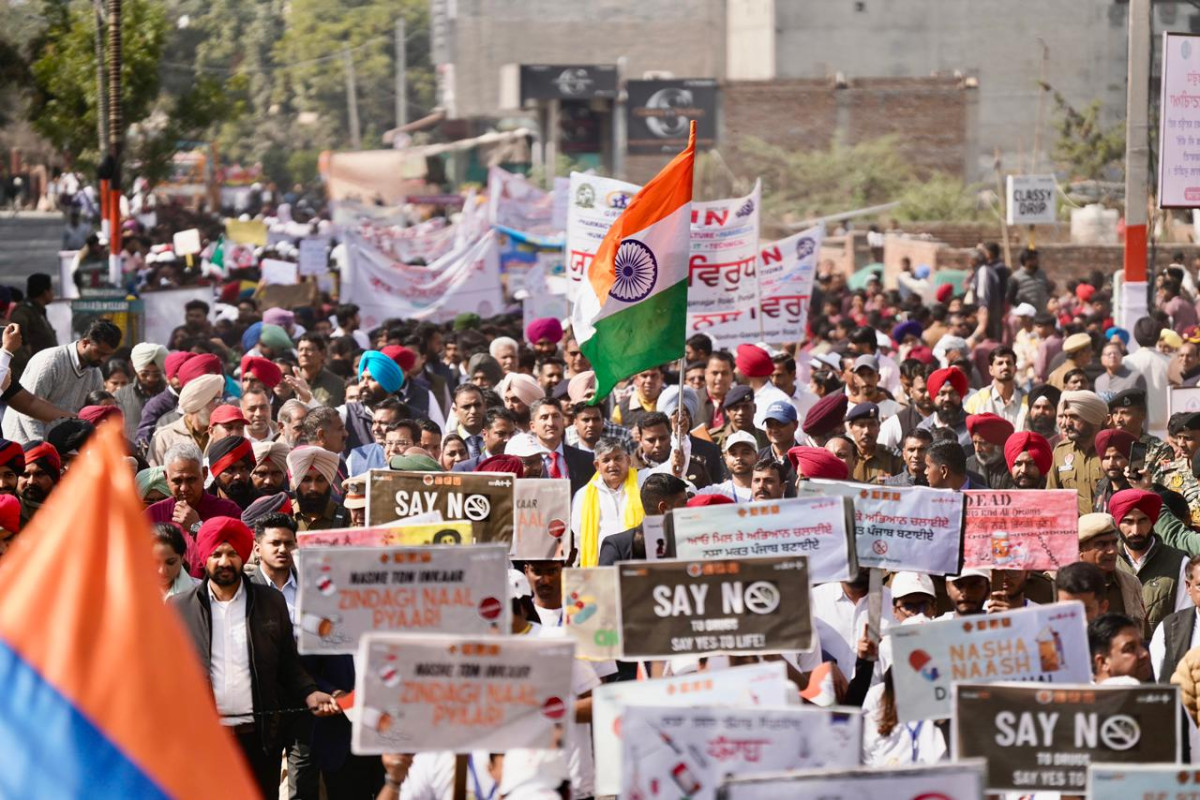 अबोहर/फाजिल्का: माननीय राज्यपाल पंजाब श्री गुलाब चंद कटारिया के नेतृत्व में प्रदेश के सीमावर्ती जिलों में निकाली जा रही 4 दिवसीय नशा-मुक्त पैदल यात्रा का समापन अबोहर के डी.ए.वी. कॉलेज में हुआ। आज अंतिम दिन नशों के विरुद्ध रेलवे स्टेशन अबोहर से डीएवी कॉलेज अबोहर तक पैदल यात्रा निकाली गई। इस यात्रा में विभिन्न विश्वविद्यालयों के कुलपति, स्कूलों और कॉलेजों के प्राचार्य, एनजीओ, सामाजिक संस्थाओं के प्रतिनिधि तथा गणमान्य व्यक्तियों ने बड़ी संख्या में भाग लेते हुए नशा-मुक्त पंजाब बनाने का संकल्प लिया।