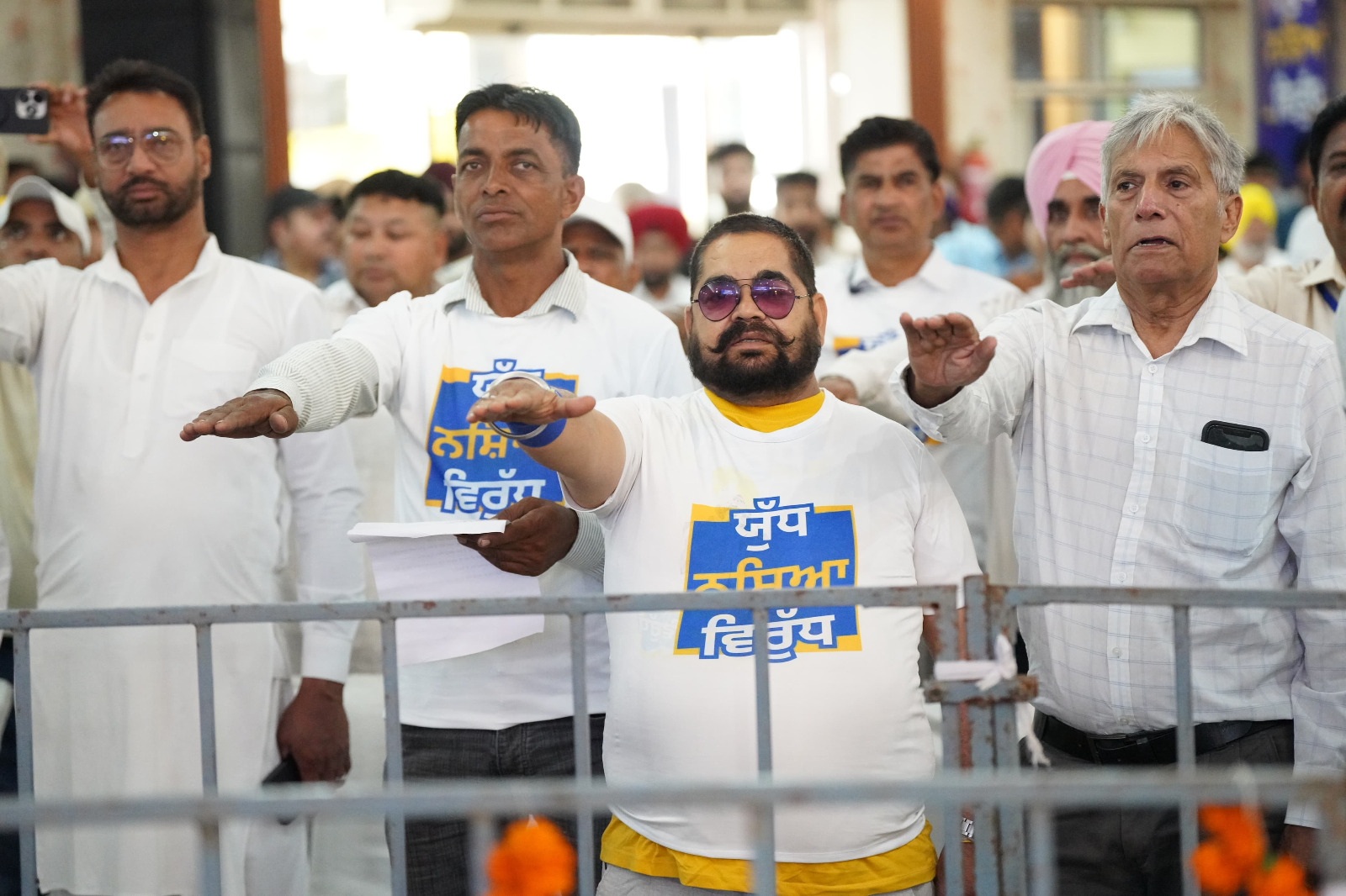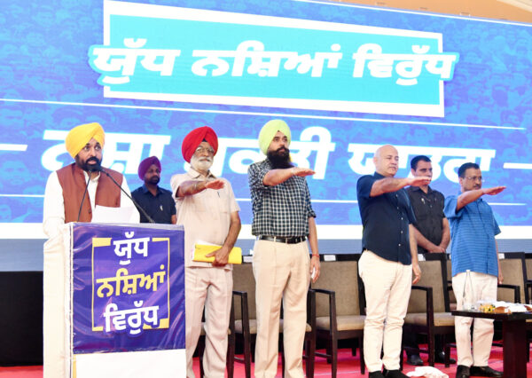 यहां एक समारोह में मुख्यमंत्री ने शपथ दिलाते हुए नशे के विरुद्ध जंग में लोगों के पूर्ण समर्थन और सहयोग की अपील की। उन्होंने कहा कि नशे की लानत राज्य के चेहरे पर एक धब्बा है और इस लानत को मिटाने के लिए राज्य सरकार को रणनीति बनाने में दो साल से अधिक समय लगा। भगवंत सिंह मान ने कहा कि अब नशे की सप्लाई लाइन तोड़ दी गई है और ऐसे घिनौने अपराधों में शामिल बड़ी मछलियों को सलाखों के पीछे डाल दिया गया, नशा पीड़ितों का पुनर्वास सुनिश्चित किया गया और यहां तक कि नशा तस्करों की जायदाद भी जब्त करके नष्ट कर दी गई।