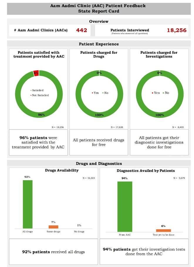 रोगी फीडबैक स्टेट रिपोर्ट कार्ड के अनुसार, पंजाब भर में 18,256 मरीजों से लिए गए साक्षात्कारों में लगभग 96 प्रतिशत मरीजों ने आम आदमी क्लीनिकों में मिले इलाज पर संतोष जताया। रिपोर्ट से स्पष्ट होता है कि राज्य की प्राथमिक स्वास्थ्य सेवाएं अब उपेक्षा और कमी की स्थिति से निकलकर भरोसे, गुणवत्ता और समय पर इलाज की दिशा में आगे बढ़ चुकी हैं। मरीजों को बिना किसी आर्थिक बोझ के समय पर उपचार मिल रहा है।