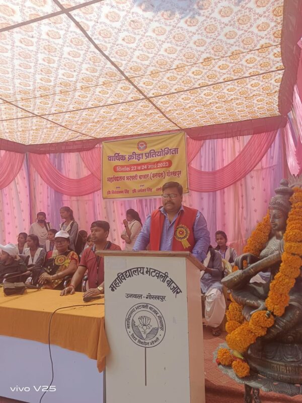 बांसगांव (गोरखपुर)। गुरुवार को महाविद्यालय भटवली बाजार उनवल गोरखपुर में वार्षिक क्रीड़ा प्रतियोगिता का उद्घाटन किया गया जिसमें मुख्य अतिथि के रूप में श्रीमती ऊषा सिंह  उपस्थित रही व खिलाड़ियों को संबोधित करते हुए उन्होंने कहा कि खेल जीवन में अनुशासन को बनाने में महत्वपूर्ण भूमिका का निर्माण करता है  अनुशासित तरीके से ही रहकर ही शरीरिक एवं मानसिक स्वास्थ्य को बेहतर बनाया जा सकता है। विशिष्ट अतिथि के रूप में महाविद्यालय के प्रबंधक डॉ  विवेकानंद सिंह जी ने कहा की  खेल हमें टीम भावना को सिखाती है जिसकी आवश्यकता हमें व्यक्तित्व निर्माण व समाज में विभिन्न तरह के कार्यों को संपदान करने में महत्वपूर्ण भूमिका निभाती है।