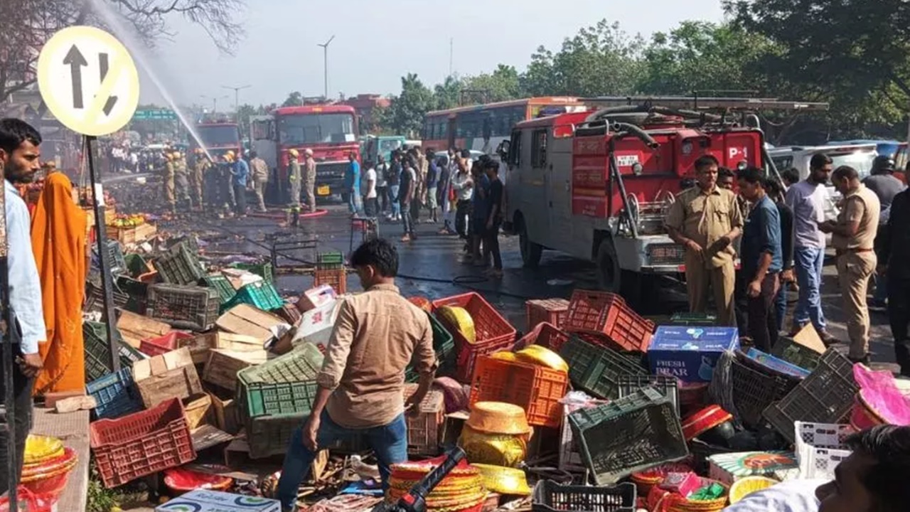 लखनऊ: फल मंडी मे लगी भीषण आग, मची अफरा तफरी