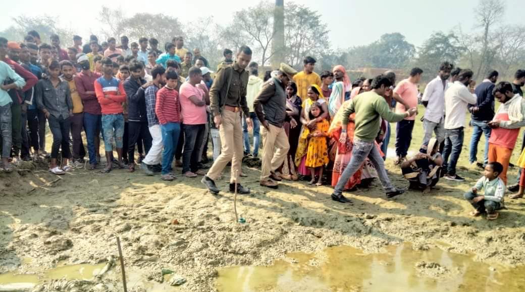 बनकटी- लालगंज थाना क्षेत्र के भुवनी गांव के पूरब एक छोटे से तालाब में 8 वर्षीय बालिका का शव मिलने से क्षेत्र में सनसनी फैल गई । सूचना पर लालगंज पुलिस व फोरेंसिक टीम समेत अपर पुलिस अधीक्षक मौके पर पहुंच गए और शव को कब्जे में लेते हुए जांच में जुट गए । भुवनी निवासी इंदल राजभर की बेटी पूर्वी के चचेरे भाई सूरज की शनिवार की देर शाम सन्तकबीरनगर जिले में बारात गई थी । बारात जाने के बाद घर की महिलाओं द्वारा विवाह उत्सव मनाया जा रहा था । इस दौरान पूर्वी वहां मौजूद थी लेकिन कुछ देर बाद वह घर पर नहीं दिखी तो स्वजनों ने खोजबीन शुरू कर दी । पूरी रात स्वजनों समेत मुहल्ले वासियों द्वारा खोजबीन का दौर चला लेकिन कहीं भी पता नहीं चला । रविवार की सुबह ढूंढने निकले लोगों में एक छोटे से बच्चे प्रिंस की नजर तालाब में कीचड़ से लथपथ एक शव पर पड़ी । प्रिंस के शोर मचाने पर लोग एकत्र हुए और पुलिस को सूचना दी गई । मौके पर पहुंचे लालगंज थानाध्यक्ष महेश सिंह व महसों चौकी इंचार्ज सूर्यभान यादव समेत जिले के अपर पुलिस अधीक्षक दीपेंद्र नाथ चौधरी पुलिस टीम के साथ मौके पर पहुंच गए । तथा पुलिस की सूचना पर फोरेंसिक टीम भी पहुंच गई और दोनों टीमें जांच पड़ताल में जुट गई ।