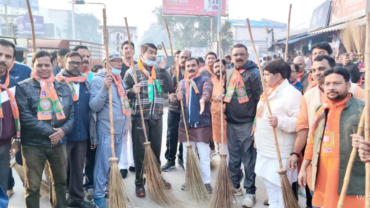 पीएम मोदी के काशी आने से पहले बीजेपी नेताओं ने उठाई झाड़ू, मलिन बस्ती से गंगा घाट तक चला सफाई अभियान