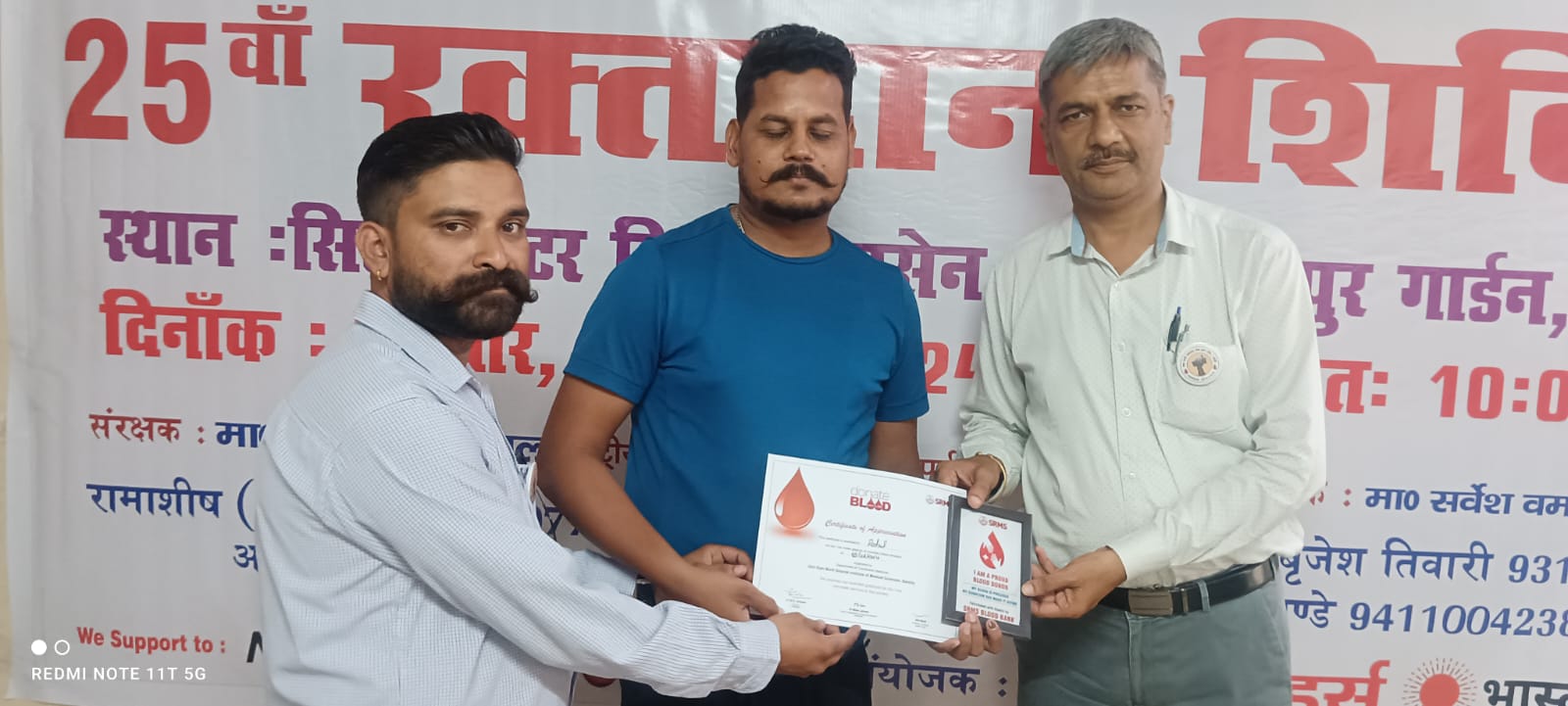 इह दौरान रक्तदान शिविर में मनीष अग्रवाल,अनूप शर्मा, श्वाती कश्यप,अमित जौहरी, निवास यादव, अमित कौशिक ,गौरव झा, शुभम झा,सुमित, मोंटू कुशवाहा मनोज यादव, हिमांशु शर्मा,गगन आदि सदस्य लोग शामिल रहे और इस रक्तदान शिविर में श्रीराम मूर्ति हॉस्पिटल ब्लड बैंक की सम्पूर्ण टीम का सहयोग रहा।   जिसकी जानकारी मीडिया प्रभारी निवास यादव ने दी।