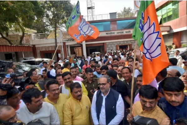 लखनऊ। पूर्वोत्तर के राज्यों में भारतीय जनता पार्टी की जीत के उपलक्ष्य में गुरूवार को प्रदेश भाजपा कार्यालय पर आतिशबाजी हुई। कार्यकर्ताओं ने ढ़ोल नगाड़ों के बीच थिरकते हुए एक दूसरे को मिठाई खिलाकर जीत का जश्न मनाया। जीत के जश्न में भाजपा के प्रदेश अध्यक्ष भूपेन्द्र सिंह चौधरी और प्रदेश संगठन मंत्री धर्मपाल भी शामिल रहे।