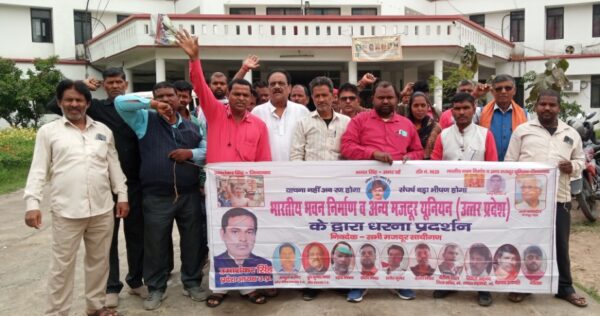 भारतीय भवन निमार्ण व अन्य मजदूर यूनियन के तत्वाधान में जिलाधिकारी कार्यालय के समक्ष धरना