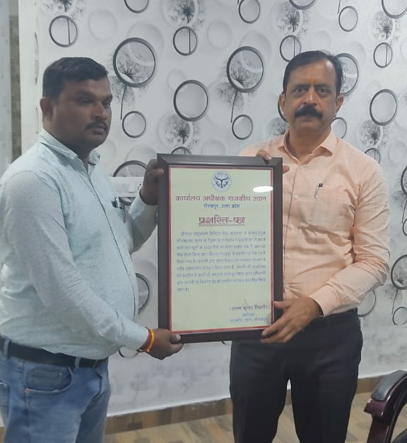 जिला उद्यान अधिकारी ने आईजीएल के बिजनेस हेड को प्रशस्ति पत्र देकर किया सम्मानित