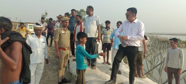 महसी क्षेत्र में बाढ़ व कटान रोधी कार्यों का डीएम ने किया निरीक्षण
