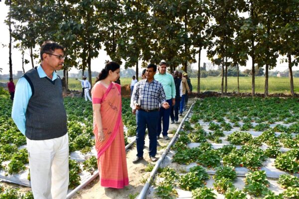 देवरिया में स्ट्रॉबेरी फार्मिंग का नया प्रयोग, डीएम ने किया निरीक्षण