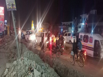 अयोध्या: नाला खोदाई से रोज लग रहा हाईवे के सर्विस मार्ग पर जाम