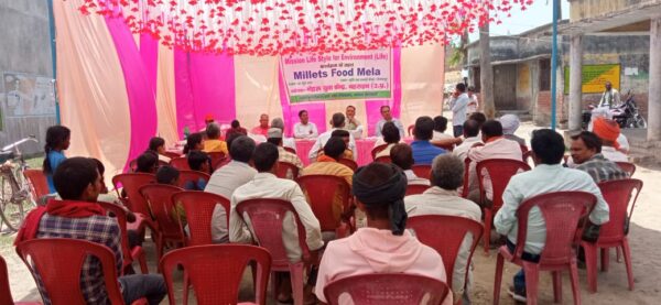 बहराइचl नेहरू युवा केंद्र द्वारा मिशन लाइफ कार्यक्रम अंतर्गत मिलेट्स फूड मेला कार्यक्रम का आयोजन राजकीय कृषि रक्षा इकाई तेजवापुर में किया गयाlइस कार्यक्रम में जनपद के विभिन्न क्षेत्रों से ग्रामीण किसानों ने युवा महिला मंडलों के सदस्यों व पदाधिकारियों ने प्रतिभाग कियाlमेले में प्रदर्शनी के तौर पर जौ, बाजरा, रागी, सावा, कोदो चेना का स्टाल लगाया गया सभी दर्शकों व किसानों को मोटे अनाज के महत्व के विषय में जानकारी दिया गयाl कार्यक्रम में मुख्य अतिथि खंड विकास अधिकारी तेजवापुर अजय प्रताप सिंह ने सभी दर्शकों व किसानों को मोटे अनाज की उपयोगिता और उसके महत्व के विषय में जानकारी दियाl