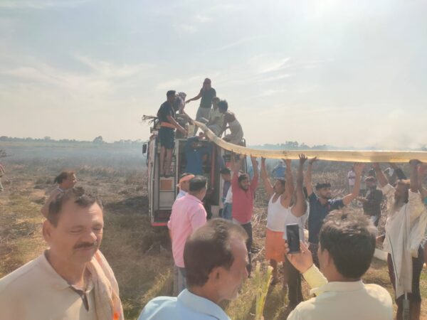 आग से एक एकड़ गेंहू जला, आग से घंटो रही अफरा तफरी