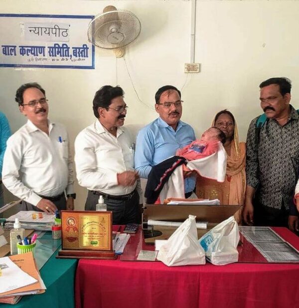 काफी खोज बीन के बाद जैविक माता पिता के न मिलने की दशा में न्याय पीठ के अध्यक्ष प्रेरक मिश्रा, सदस्य अजय श्रीवास्तव, डॉ0 संतोष श्रीवास्तव, मंजू त्रिपाठी द्वारा शिशु को एडाप्शन के लिए फ्री घोषित किया गया था। गुरुवार को केंद्र सरकार की एजेंसी कारा के तहत सम्पूर्ण प्रक्रिया पूरी करने के बाद शिशु के कानूनी अभिभावक शिशु गृह के अधिकारियों के साथ न्याय पीठ के दफ्तर पहुंचे और शिशु को गोद देने की औपचारिकता पूर्ण करने की बात कही, न्याय पीठ के अध्यक्ष एवं सदस्यों ने पत्रजातों का अवलोकन करने के बाद शिशु को उसके कानूनी माता पिता को सौप दिया। आगे की प्रक्रिया सम्बंधित जनपद से पूर्ण कराने का आदेश दिया।