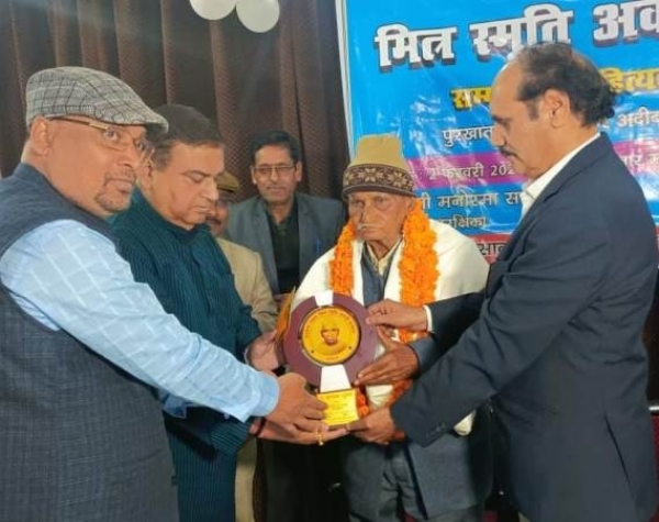 लखनऊ। इस वर्ष-2023 का मित्र स्मृति अवधी सम्मान लखीमपुर खीरी निवासी वरिष्ठ साहित्यकार पं. सत्यधर शुक्ल को प्रदान किया गया,। उन्हें यह पुरस्कार गुरूवार को प्रेस क्लब में आयोजित समारोह में दिया गया। पुरस्कार स्वरूप ग्यारह हजार की धनराशि, स्मृति चिन्ह और अंगवस्त्र भेंट किये गए। समारोह का आयोजन लक्ष्मण प्रसाद मित्र सेवा संस्थान की ओर से किया गया। समारोह के मुख्य अतिथि वरिष्ठ साहित्यकार एवं उ.प्र. हिन्दी संस्थाान के निदेशक रहे डॉ. सुधाकर अदीब ने मित्र जी के नाटकों की चर्चा करते हुए कहा कि उन्होंने अवधी और खड़ी बोली में पन्द्रह नाटक और एकांकी लिखे हैं, जिनमें समकालीन समाज की विसंगतियों को बहुत सलीके से दर्शाया गया है।