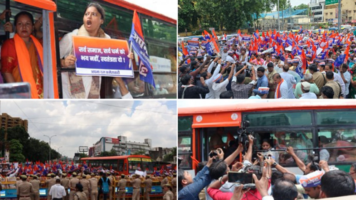 लखनऊ में महिला सुरक्षा और रोजगार को लेकर सड़क पर उतरीं विधायक पल्लवी पटेल, पुलिस से हुई तीखी नोकझोंक