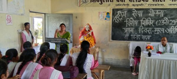 कार्यक्रम के मुख्य अतिथि छात्राओं को संबोधित करते हुए कहां राष्ट्रीय सेवा योजना हमें नैतिक दायित्व से परिचित कराती है। इस अवसर पर महाविद्यालय के प्राचार्या डॉ मनीषा सिंह ने छात्राओं को संबोधित करते हुए कहा एनएसएस के माध्यम से समाज सेवा तथा स्वयं का विकास हो सकता है। एनएसएस कहना नहीं करना सिखाती है। महाविद्यालय के प्रवक्ता फिरोज अली ने कहा एनएसएस देश के प्रति समर्पण राष्ट्रीय एकता की भावना को जागृत किया ।इस अवसर पर स्वयं सेविकाओं द्वारा योगा, स्वच्छता अभियान जागरूकता कार्यक्रम का आयोजन किया गया। इस अवसर पर महाविद्यालय के प्रवक्ता रीमा जी सुष्मिता राव पंकज प्रताप्राव शशिकांत जी एवं समस्त स्वयंसेविका उपस्थित रहे।