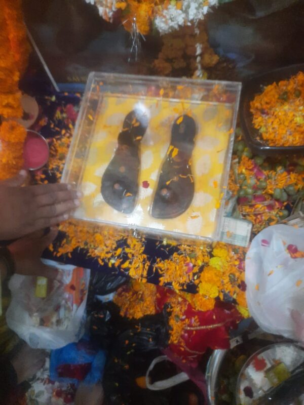 उन्होंने कहा कि शिरडी साईं की कृपा से सबको मंगल मयी चरण पादुका के दर्शन का शुभ अवसर आया है तथा शोभा यात्रा यहां पर विश्राम करेगी। इस शुभ आयोजन पर साईं बाबा की कृपा से भण्डारा आयोजित किया गया है और प्रसाद वितरण किया गया। श्री भट्ट ने कहा कि मेरे नवनिर्मित भवन में चरण पादुका के प्रवेश होते ही भवन का कण कण,कोना कोना पवित्र और मंगलकारी हो चुका है और हम सब साईं भक्तो का जीवन धन्य एवं कृतार्थ हो गया है। शोभा यात्रा में पंडित परशुराम भट्ट,बिजय कुमार भट्ट, कमलेश कुमार,ओमेंन्द्र मणि भट्ट,रविलाल सुनील,उमाशंकर चौधरी,रामपत सहित नगर क्षेत्र के सैकड़ों साईं भक्त।