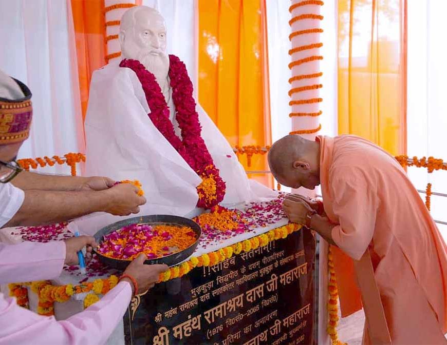 सीएम योगी परमपूज्य ब्रह्मलीन श्री महंथ रामाश्रय दास जी की प्रतिमा का किया अनावरण