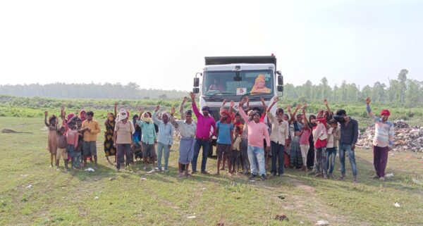 नगर निगम का कूड़ा गिराने आए वाहन को ग्रामीणों ने रोका, किया हंगामा