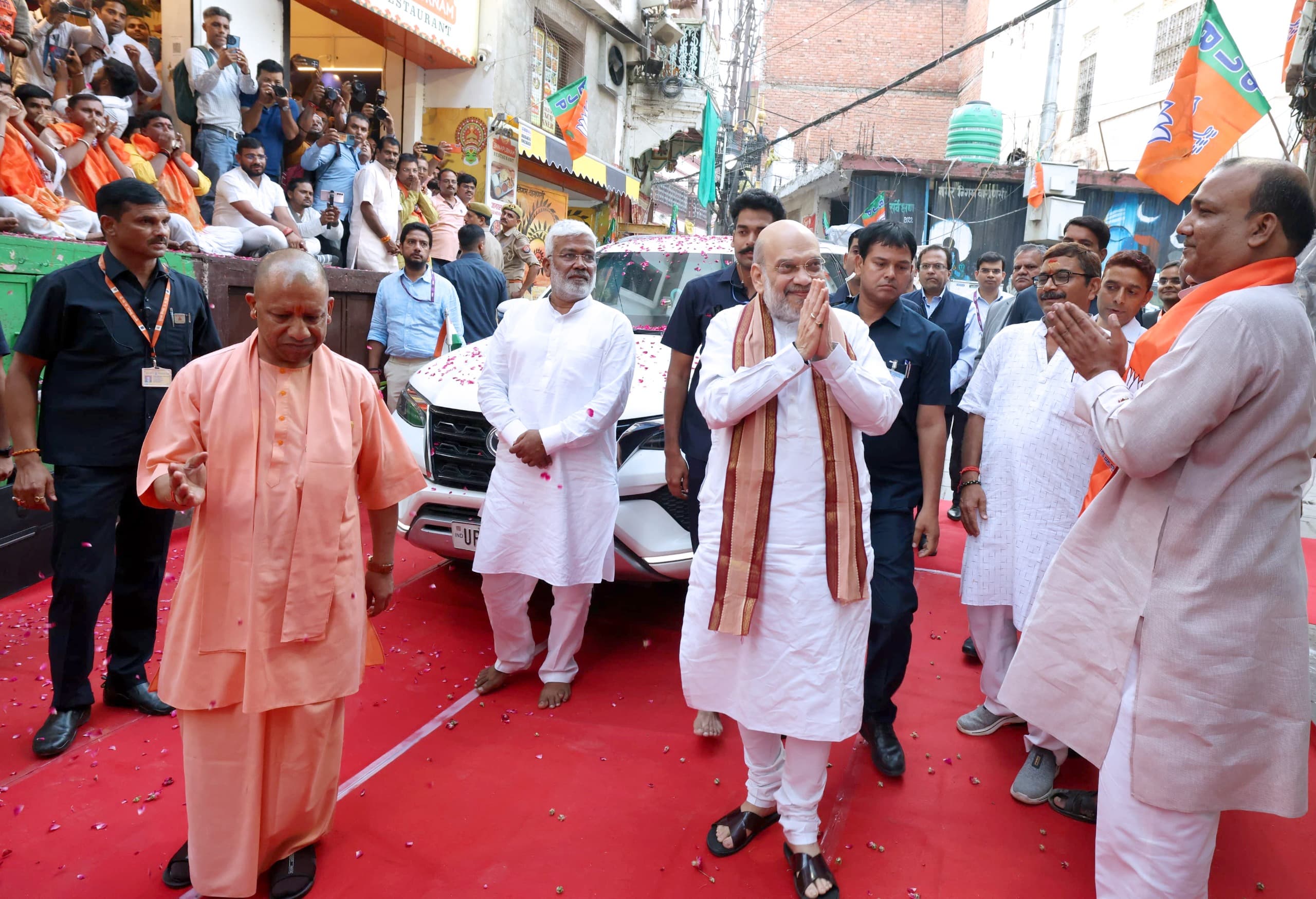 शाह व योगी ने भी हाथ जोड़कर किया आमजन का अभिवादन