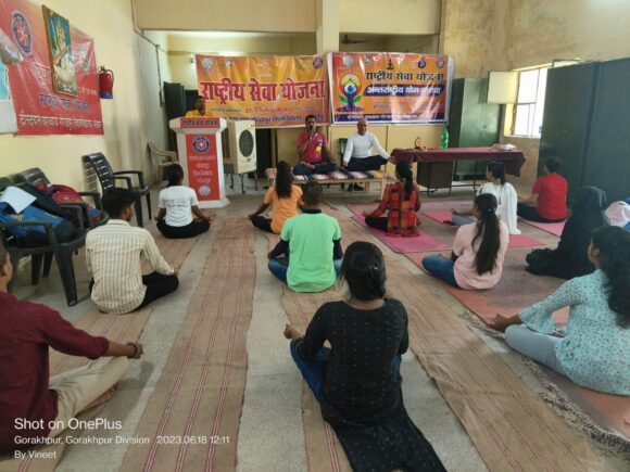 राष्ट्रीय सेवा योजना द्वारा योग दिवस के चतुर्थ दिवस पर कराया गया योगाभ्यास