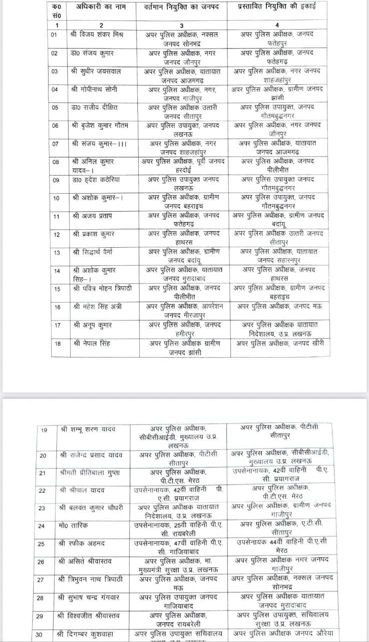 लखनऊ: उत्तर प्रदेश की योगी आदित्यनाथ सरकार ने बुधवार को प्रांतीय पुलिस सेवा (पीपीएस) के 37 पुलिस उपाधीक्षकों के तबादले कर दिए हैं। बता दें प्रदेश की सीएम योगी आदित्यनाथ कानून-व्यवस्था की स्थिति बेहद मजबूत करने में लगे हैं। इसी कड़ी में आज बड़ी संख्या में पीपीएस अधिकारियों के तबादले किया गए हैं।